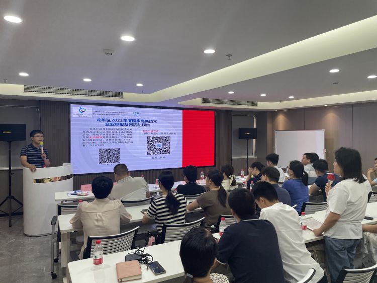 为进一步做好辖区内科技企业高新技术企业认定前期准备工作,助力辖区企业深入解读科技型中小企业评价相关政策及国高系统填报实操等环节的注意事项,进一步促进龙华区企业创新主体发展壮大,2023年7月27日,由深圳市龙华区科技创新局主办,深圳市中小科技企业发展促进中心承办的龙华区2023年度国家高新技术企业认定政策宣讲会(第四场)在龙华区青创园东环汇成功举办。