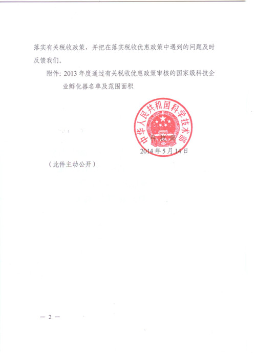 附件:2013年度通过有关税收优惠政策审核的国家级科技企业孵化器名单及范围面积.doc