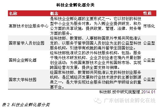 根据我国科技部对孵化器的分类,国内孵化器可分为高新技术创业服务中心、国家留学人员创业园、国际企业孵化器、国家大学科技园4种形式,简称为孵化器。其中国家留学人员创业园、国家企业孵化器、国家大学科技园需经科技部或者联合教育部批准认定才可设立,较多的承担了国家扶持科技创新的职能,享受国家相关优惠政策扶持,具备公益色彩,而高新技术创业服务中心则更多的以市场化方式运作,对入孵企业的类型筛选要符合自身孵化器的定位,并且需要考虑运营成本最终以追求盈利为目的(见表2)。