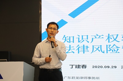 丁建春老师进行“知识产权转化运用过程中的法律风险管控”的主题分享