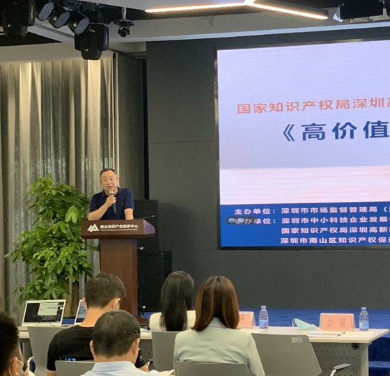 2020年10月26日,由深圳市市场监督管理局(深圳市知识产权局)主办,国家知识产权局深圳高新区审查员实践基地、深圳市中小科技企业发展促进中心、深圳市南山区知识产权保护中心承办的“高价值专利培育”培训在南山区知识产权保护中心三楼多功能厅成功举办。深圳市国家自主创新示范区服务中心金湛副主任、深圳市中小科技企业发展促进中心张秀萍主任等领导出席了本次活动,来自深圳市高新技术企业代表100多人参加培训。