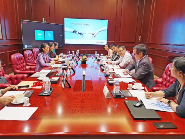 下午,张主任带队前往华为坂田基地开展走访调研工作,华为知识产权部吴志坚部长、俞剑部长等热情接待。首先,在吴部长的带领下,基地参访人员参观了华为生态展厅,展厅讲解员向参访人员介绍了华为在智慧城市、智慧政务、智慧园区、能源、交通、云服务、金融、互联网、教育等领域提供的优质、高效的服务及解决方案。其中,全息路口+智行/交通综合治理、AI辅助新冠诊疗、智慧园区智能运营中心等方案的展示让参访人员印象深刻。随后,张主任一行与华为知识产权部吴部长等进行了座谈交流,就华为公司及知识产权概况、过往实践情况、实践需求及建议等方面进行了深入的沟通和交流。