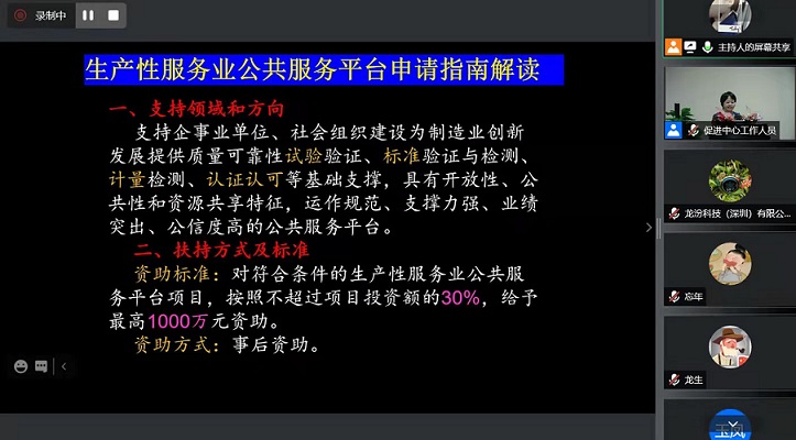 2021年10月26日,由深圳市龙华区科技创新局主办,深圳市中小科技企业发展促进中心承办的2021年龙华区创新载体政策宣讲会(工信+发改载体政策专场)成功举办,助力辖区科技企业深入解读生产性服务业公共服务平台、工程研究中心、企业技术中心等创新载体相关政策,促进产学研融通创新,强化关键核心技术攻关。