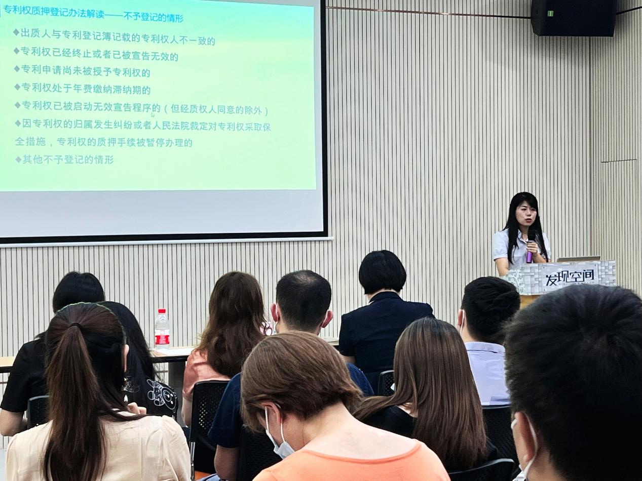 本次活动还邀请了市知识产权保护中心特派专员黄老师,从专利质押登记、专利开放许可、专利质押办理、专利转移等方面深入解读知识产权质押相关政策。