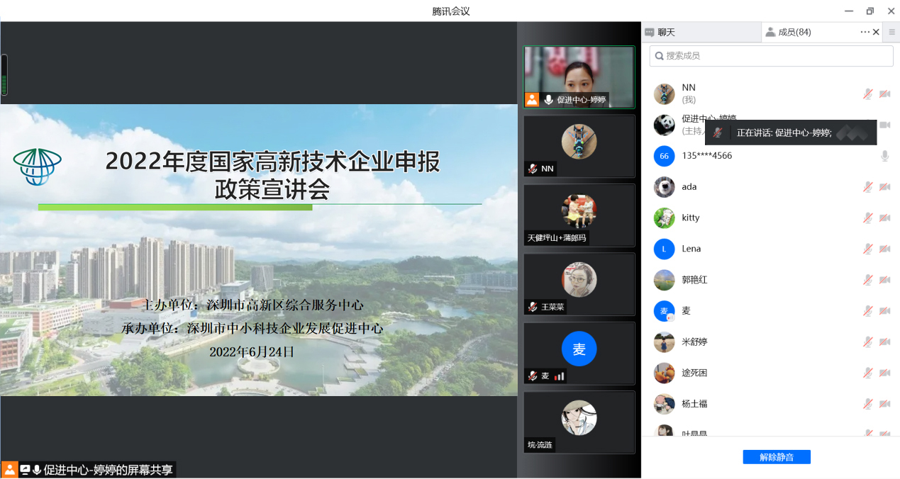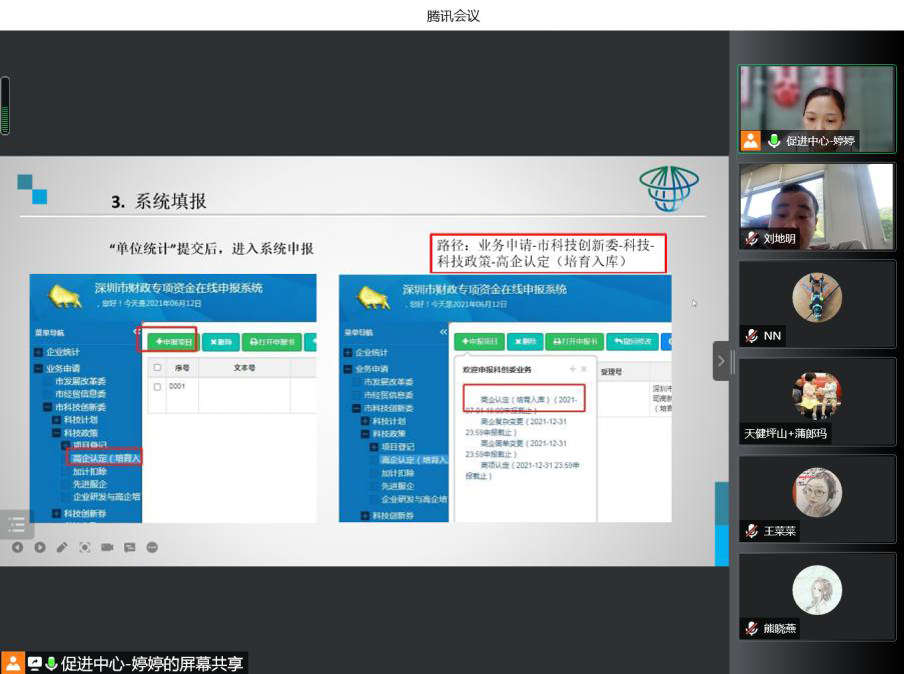 首先,宣讲了2022年国家高新技术企业认定条件,在高新技术企业认定申报系统填报实务讲解环节,针对高新技术企业认定所涉及的两个系统——全国高新技术企业认定管理工作网和深圳市科技业务管理系统,详细讲解系统填报、实际演示操作填报流程。