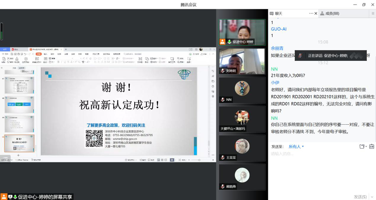 后续,深圳市高新区综合服务中心(深圳市科技金融服务中心)、深圳市中小科技企业发展促进中心会继续开展高企认定的相关政策解读服务,助力深圳高新区企业开展高新技术企业认定系统申报工作。