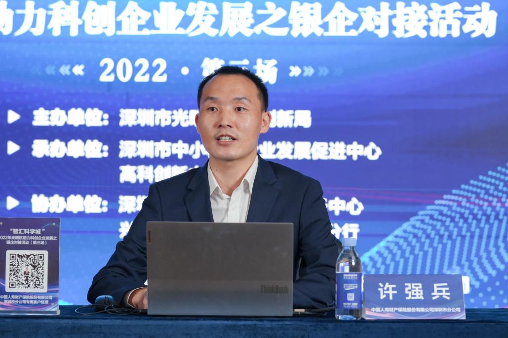 中国人寿代表分享了光明区科技金融保险板块补贴政策,详细介绍了不同发展阶段的科技企业适合购买哪些金融保险产品来转移风险,以及各类金融保险产品的特点,让科技型中小企业进一步了解和掌握如何选择适用的科技金融保险产品,助力企业分散和化解创新创业风险。