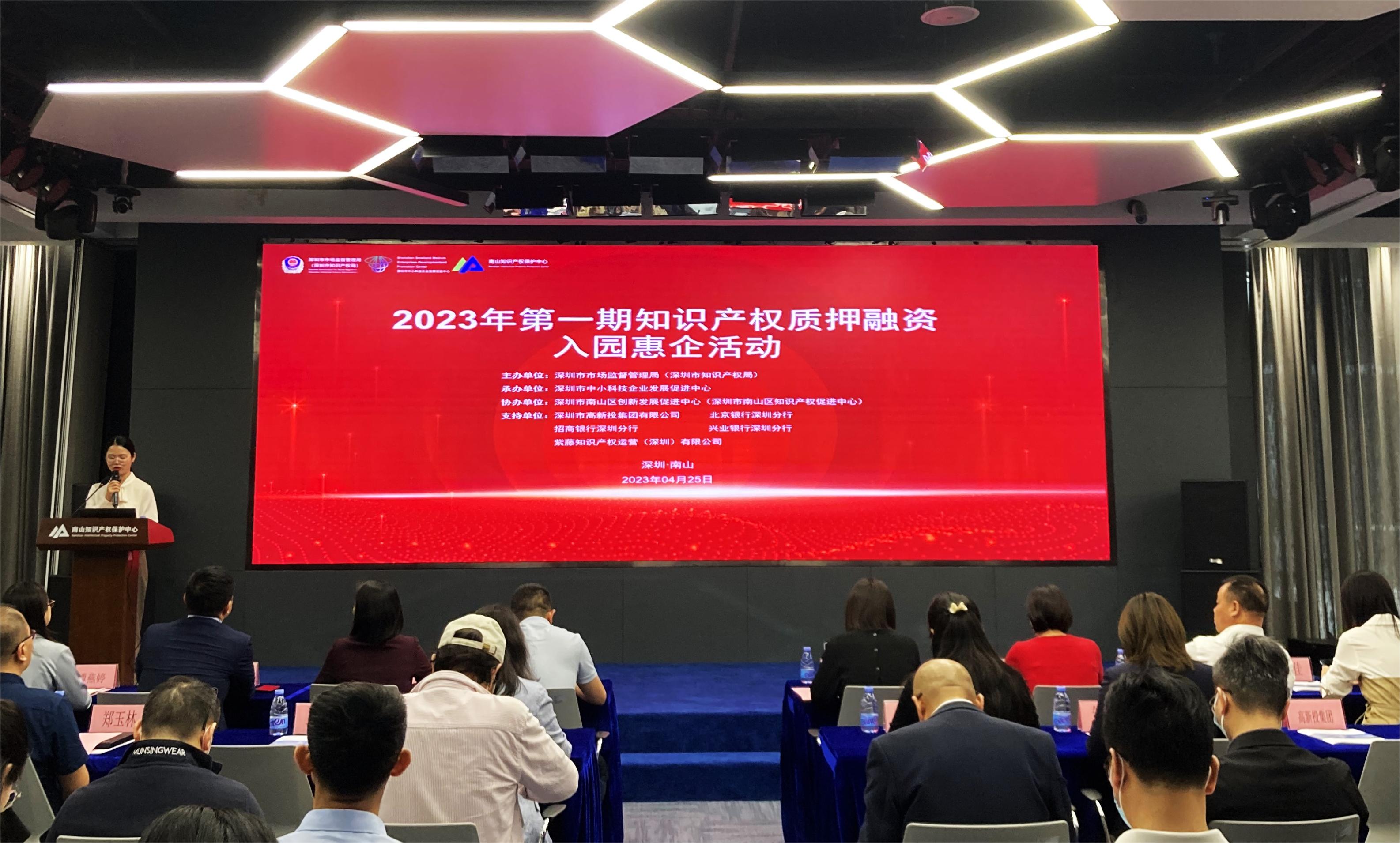 4月25日下午,2023年第一期知识产权质押融资入园惠企活动在南山深圳湾科技生态园南山知识产权保护中心成功举办。本活动是今年深圳市知识产权宣传周活动的重要环节,由深圳市知识产权局主办,深圳市中小科技企业发展促进中心承办,深圳市南山区知识产权促进中心、各金融机构与知识产权专业机构协办与支持的知识产权质押融资入园惠企活动,旨在促进知识产权与金融资源有效融合,畅通产业园区企业知识产权融资需求和金融机构融资产品对接渠道,帮助企业做好融资工作。80余家市内企业、金融机构和服务机构代表参加了本次活动,各相关领域专家通过活动介绍了知识产权质押融资产品、案例及操作实务。