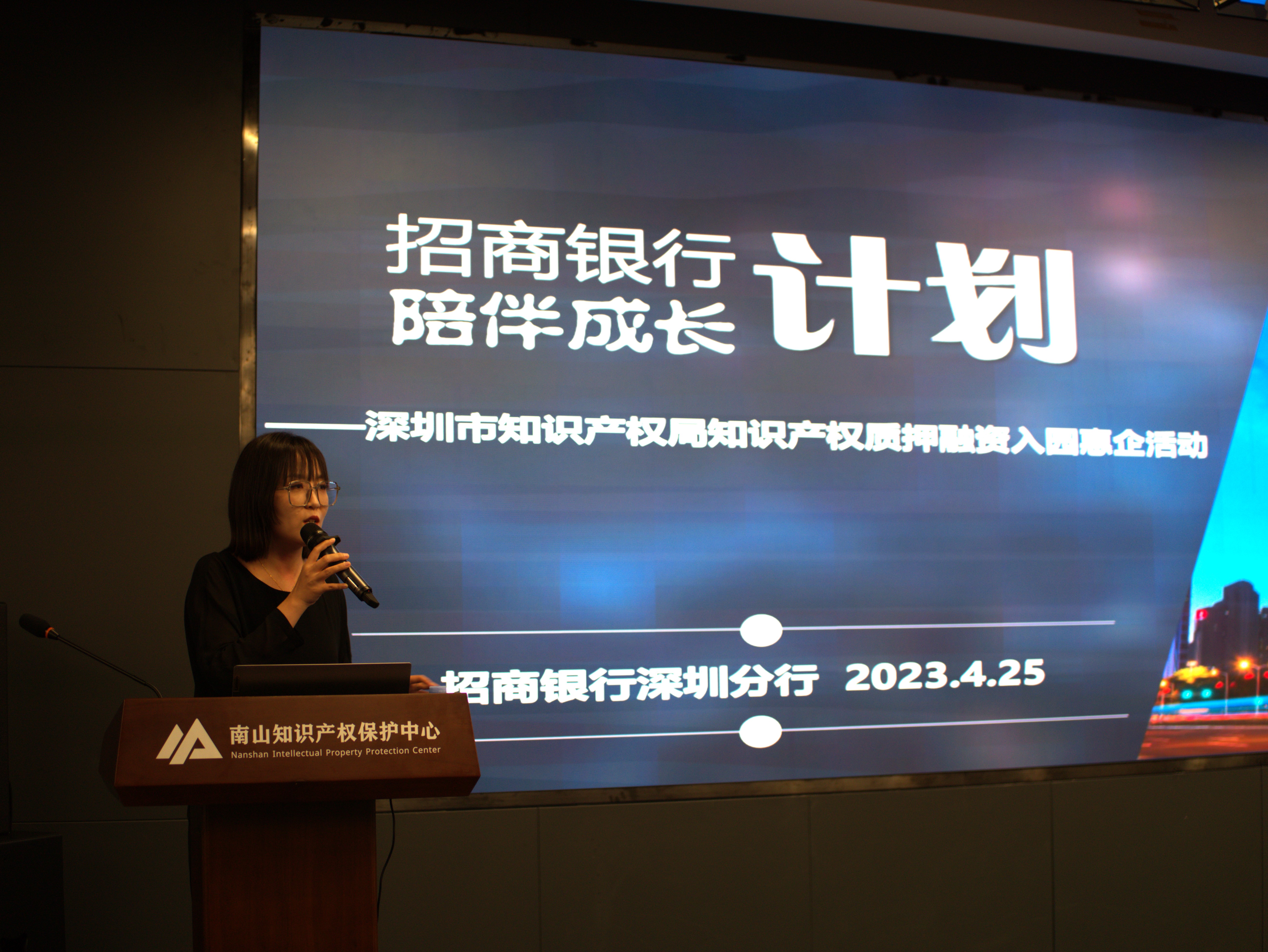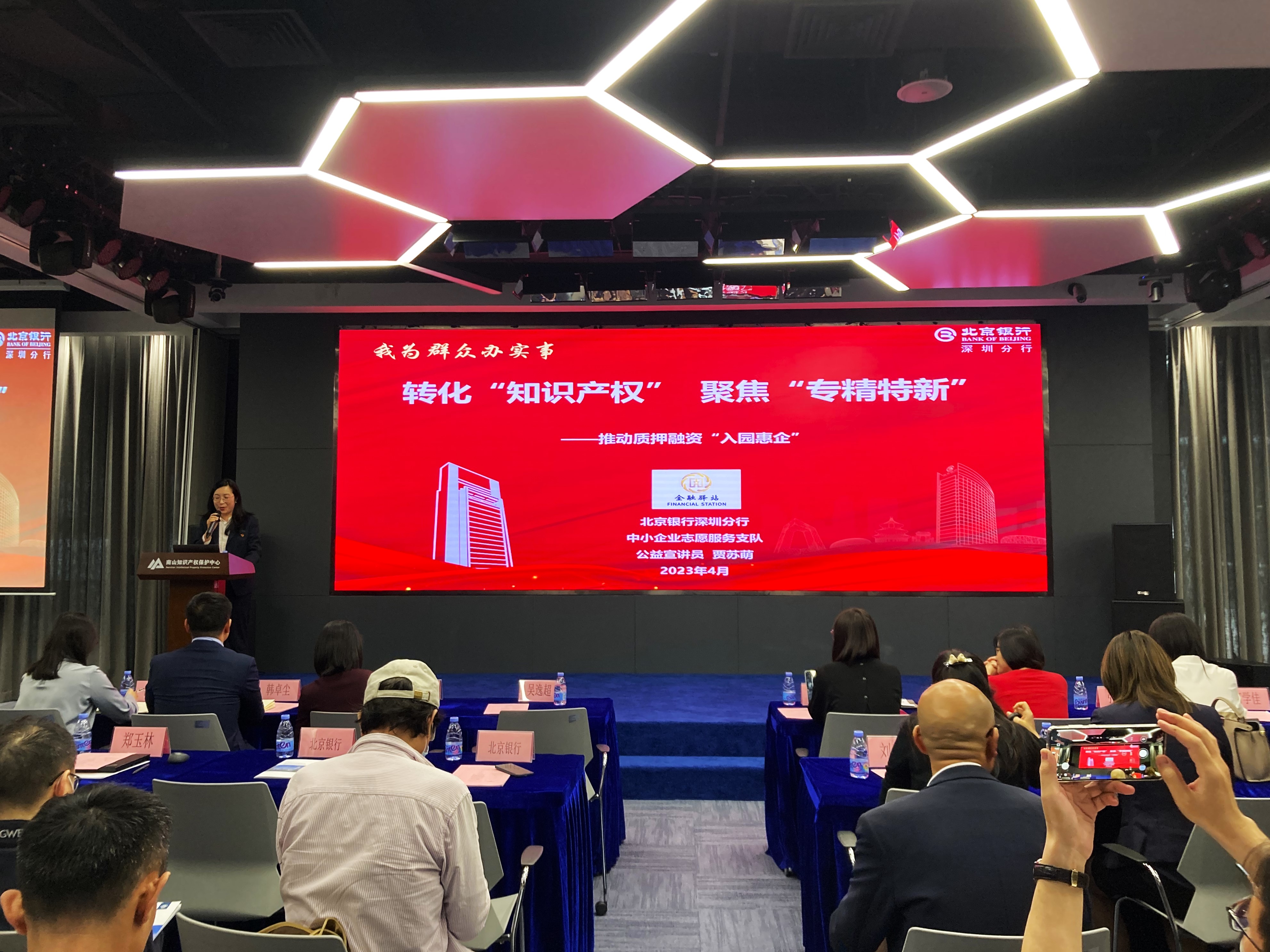 此外,为进一步推动知识产权金融赋能,将知识产权质押融资工作更高质量落实,活动还邀请到了深圳市高新投集团有限公司、北京银行深圳分行、招商银行深圳分行、兴业银行深圳分行为现场企业代表作金融产品分享。