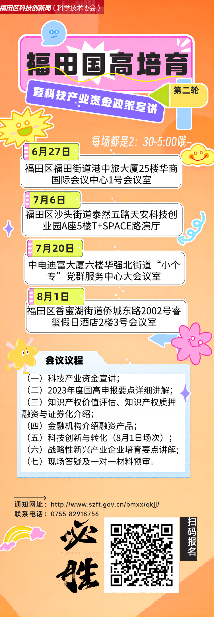 为协助福田辖区科技企业申报国家高新技术企业认定,福田区科创局将联合金融机构召开多场线下国家高新技术企业培育辅导会,同时,福田区科创局提供1对1国高申报材料预审服务及各类特色课程。诚邀各企业选择合适的场次参加!