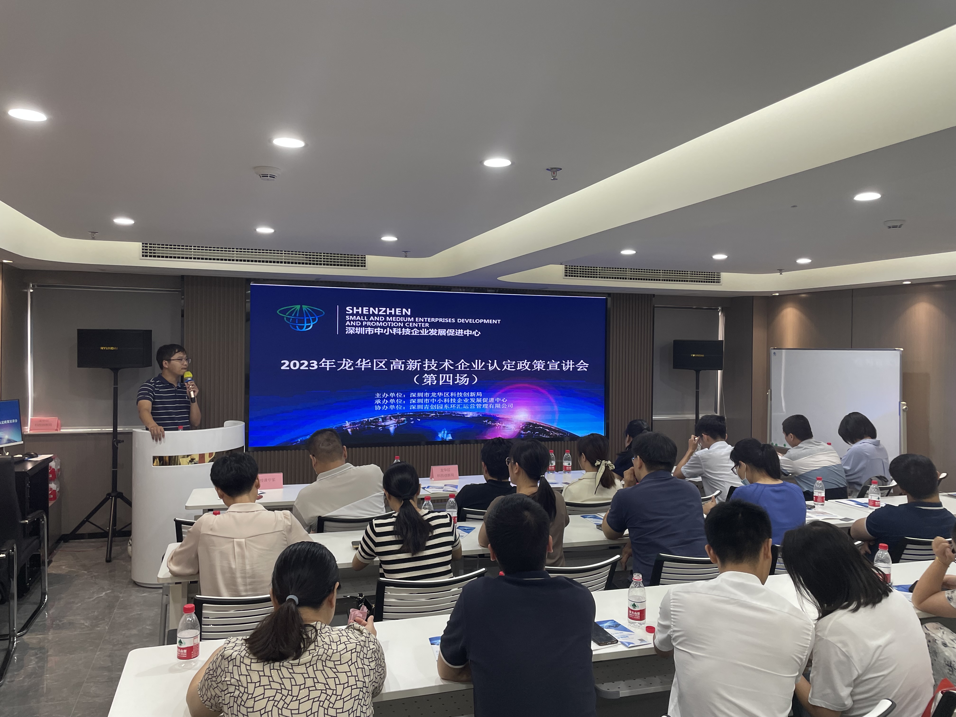 为进一步做好辖区内科技企业高新技术企业认定前期准备工作,助力辖区企业深入解读科技型中小企业评价相关政策及国高系统填报实操等环节的注意事项,进一步促进龙华区企业创新主体发展壮大,2023年7月27日,由深圳市龙华区科技创新局主办,深圳市中小科技企业发展促进中心承办的龙华区2023年度国家高新技术企业认定政策宣讲会(第四场)在龙华区青创园东环汇成功举办。