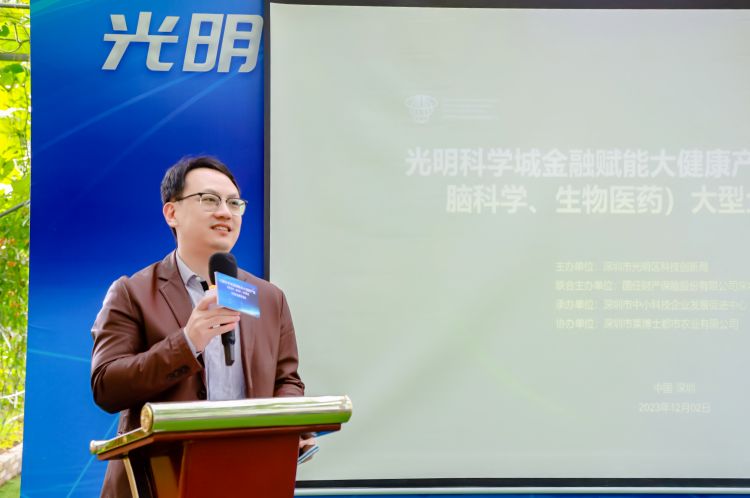 活动在光明区科技创新局副局长谢泽鑫同志的致辞中拉开了序幕。谢泽鑫同志介绍了光明科学城依托大设施、大平台、专业园区、专项政策、产业基金,大力发展生物医药产、学、研、医等领域,深入构建生物医药产业生态圈,目前已初步形成集聚效应。光明区科技创新局将持续推动光明科学城科技金融赋能大健康产业,努力将光明科学城打造成为全市“生物医药技术创新区”和“未来产业策源地”。