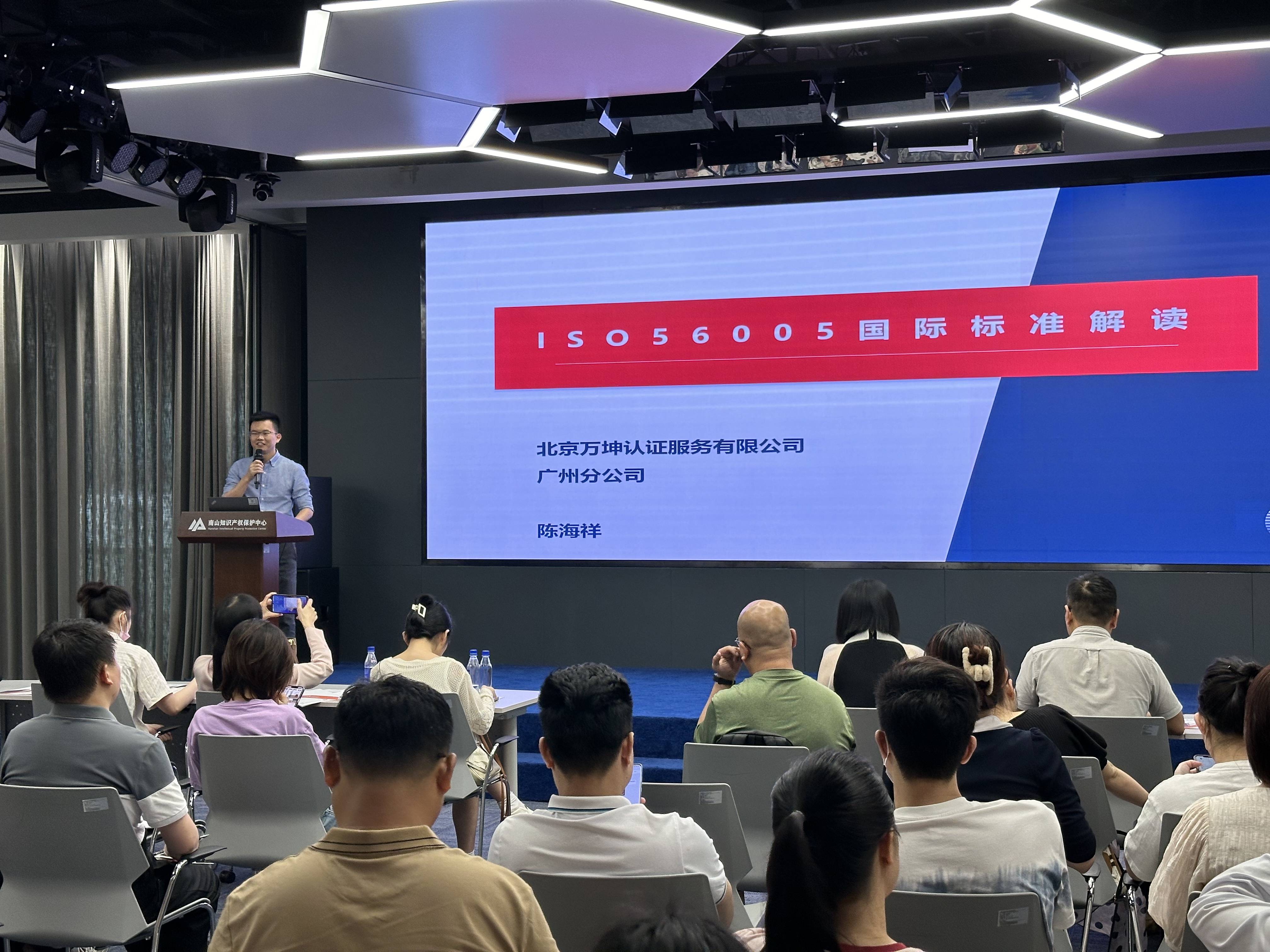 保护知识产权就是保护创新,为进一步推动ISO56005国际标准更高质量落实,会议还邀请到了北京万坤认证服务有限公司总经理陈海祥为现场企业代表作IS056005国际标准解读。多角度、多维度介绍了该标准的实施价值、条款解读、落地建议。