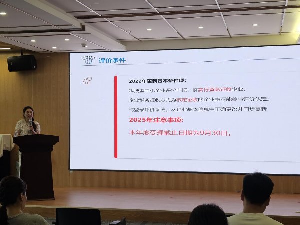 7月11日,深圳市深汕特别合作区科技创新和经济服务局在区党群服务中心举办2025年科技型中小企业评价及高新技术企业形审解析培训会。本次培训特邀市工信局下属机构深圳市中小科技企业发展促进中心专家,围绕认定政策解读、申报材料编制、评审要点等核心内容进行全方位解析,助力企业提升申报质量和通过率。