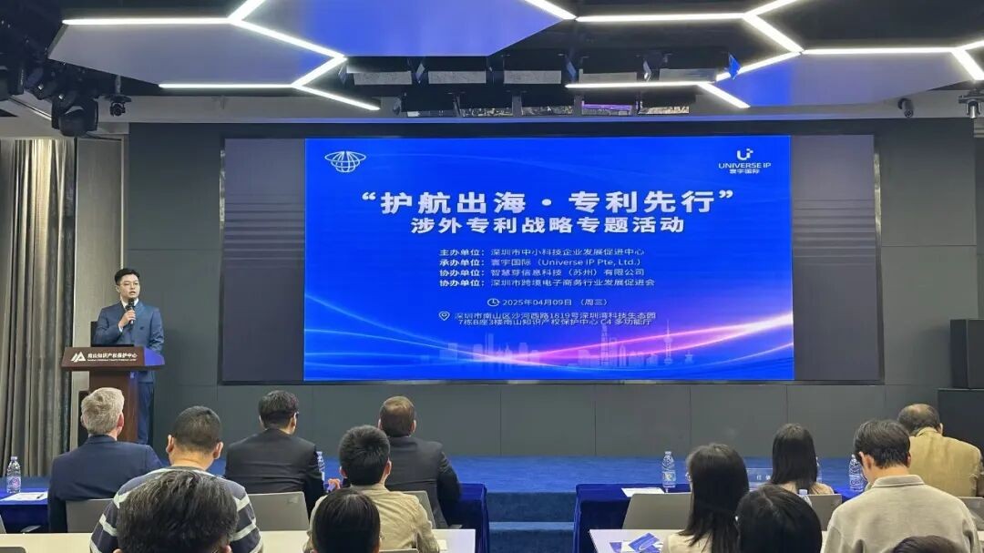 深圳作为中国科技创新的前沿阵地,活动于 2025 年 4 月 9 日在深圳市南山区沙河西路 1819 号深圳湾科技生态园 7 栋 B 座 3 楼南山知识产权保护中心 C4 多功能厅举行,由深圳市中小科技企业发展促进中心主办,寰宇国际(Universe IP)承办,智慧芽信息科技(苏州)有限公司、深圳市跨境电子商务行业发展促进会协办。