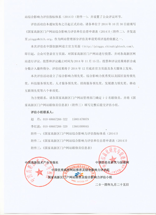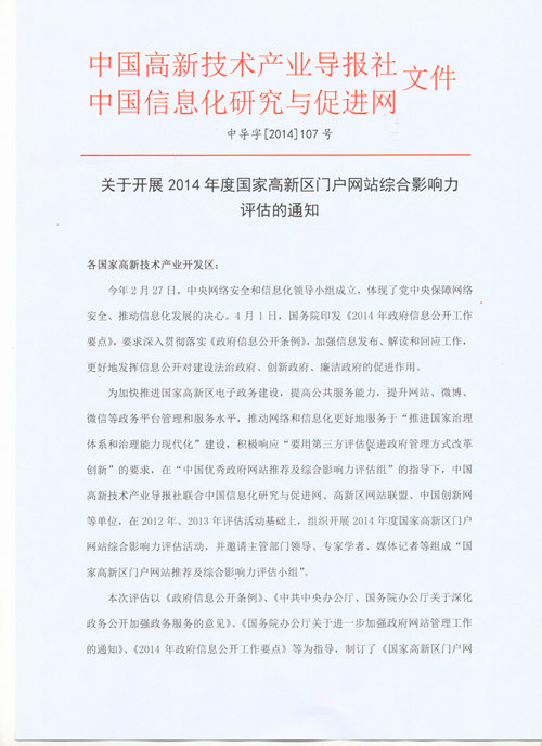 2014年度国家高新区门户网站综合影响力评估正式启动