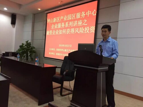 10月27日下午,“融资企业如何获得风险投资”讲座在坪山新区留学生创新产业园顺利举办。此次讲座为坪山新区产业园区服务中心企业服务系列讲座首场,由深圳市坪山新区产业园区服务中心主办,深圳市中小科技企业发展促进中心承办。