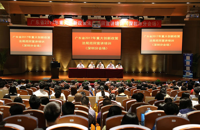为落实2017年全省创新发展大会精神,推动重大创新政策法规落地生效,让各类创新主体尽晓政策点、尽享政策优惠。5月26日上午,由深圳市科技创新委员会、深圳市高新区服务中心承办、深圳市中小科技企业发展促进中心协办的广东省2017年重大创新政策法规巡回宣讲活动在深圳市南山区科兴科学园举行。深圳市各企业、孵化器、高校、科研院所和新型研发机构的负责人及相关人员500多人参加了宣讲会。