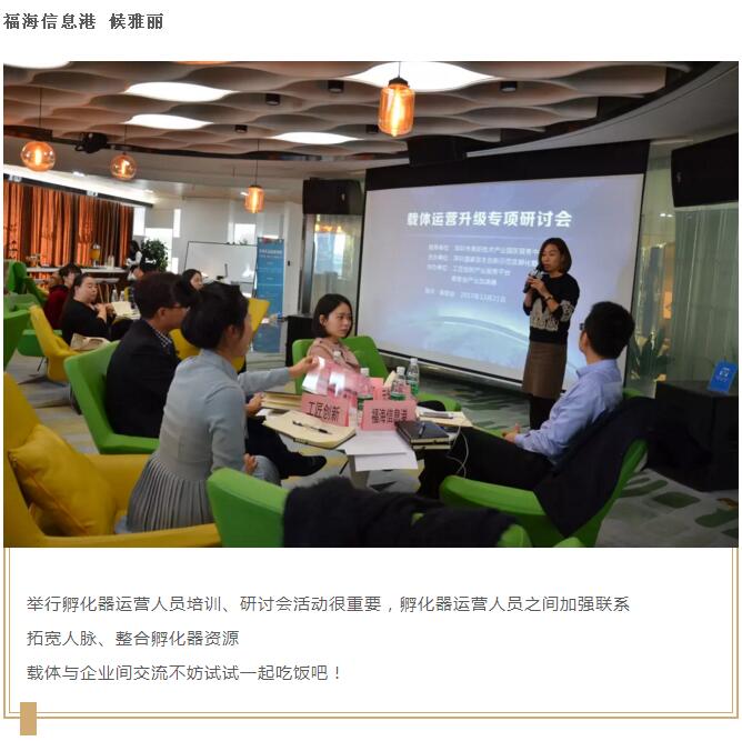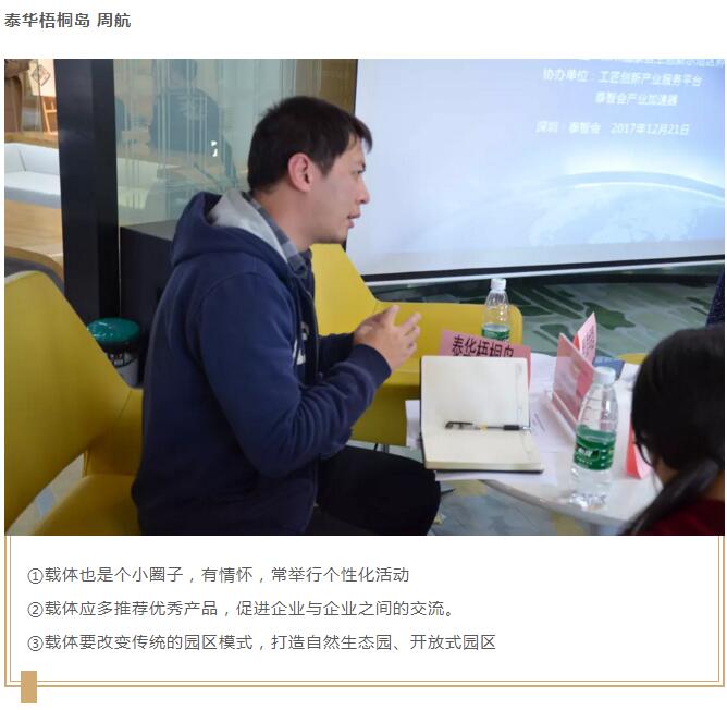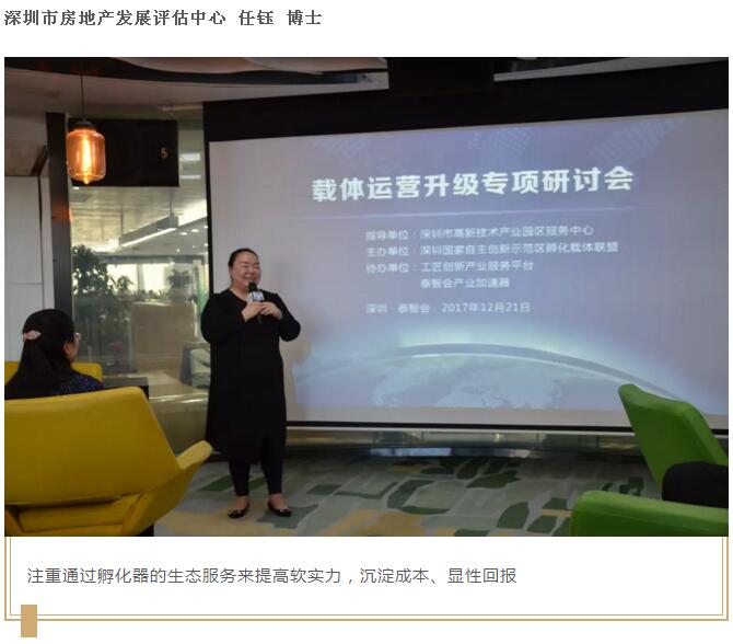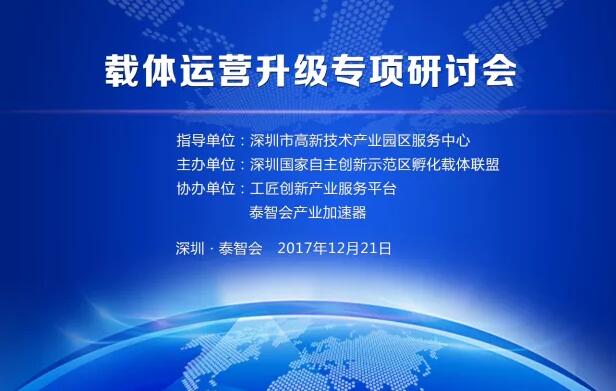 2017年12月21日,由深圳市高新技术产业园区服务中心指导,深圳国家自主创新示范区孵化载体联盟主办,工匠创新产业服务平台,泰智会产业加速器协办的『孵化载体运营升级专项研讨会』在深圳成功举办。