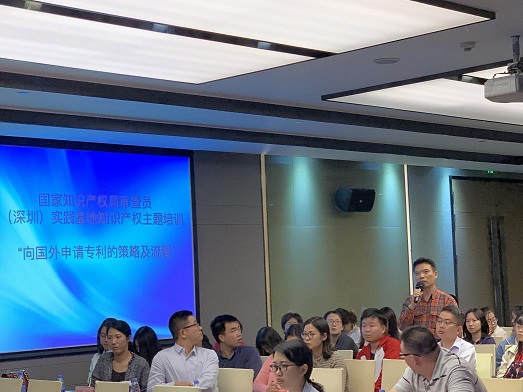 最后,来自国家知识产权局专利局的专利审查专家吴斐老师为参会者做了以“向国外申请专利的策略及流程”为主题的培训。吴斐老师为企业介绍了综合运用巴黎公约、专利合作条约(PCT)、海牙协定等多种途径进行海外专利申请的方法和策略,并配套相关案例讲解,让参会企业受益匪浅。在交流互动环节中,参会企业反响热烈,互动积极。